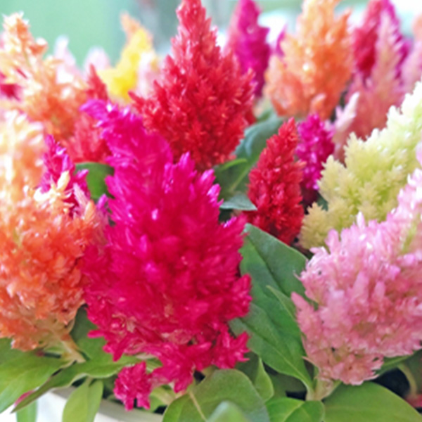 鶏冠(とさか)に似たユニークな形状のケイトウは、秋のアレンジに個性を加えます。赤や黄、オレンジなど、温かみのある色が特徴で、秋の空気感を感じさせる花です。