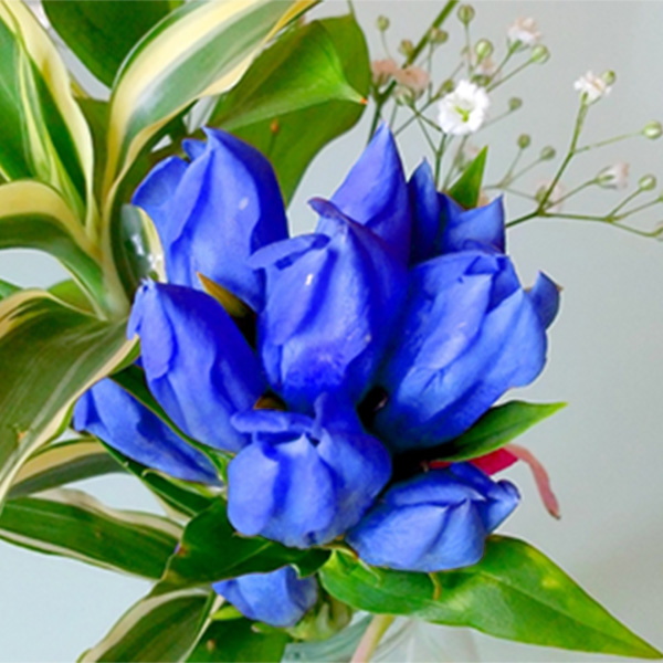 深い青や紫が美しいリンドウは、秋の訪れを告げる花のひとつ。シンプルで上品な印象を与え、和風のアレンジメントやシックな雰囲気を演出する際に重宝されます。