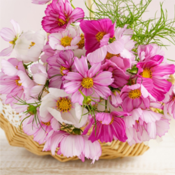 秋の風物詩とも言えるコスモスは、ピンク、白、赤などの柔らかな色合いで、軽やかな印象を与えます。庭や野原を思い出させる、自然な美しさが魅力の花です。