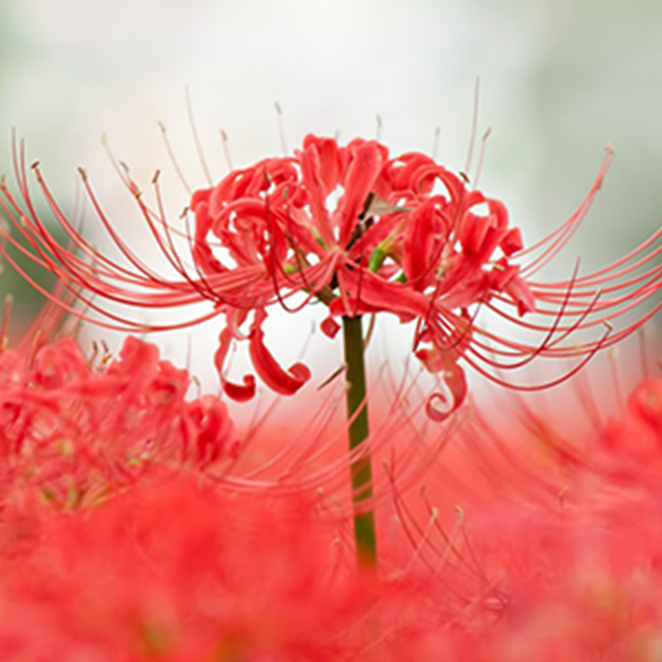 鮮烈な赤い花が目を引くヒガンバナは、日本の秋に欠かせない存在。神秘的で独特な雰囲気があり、季節感を強調したアレンジに使われます。