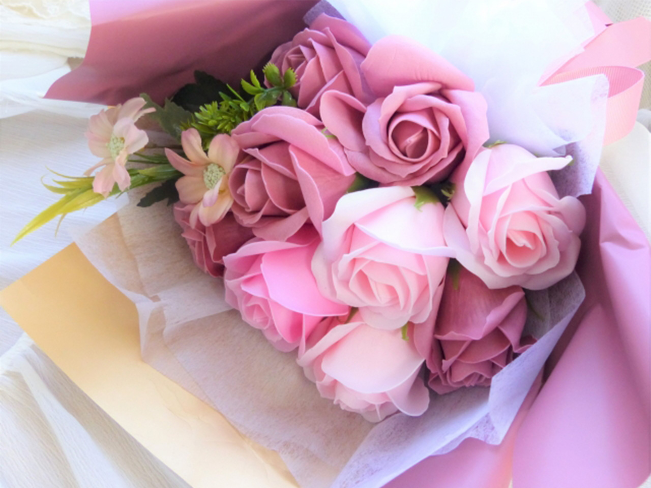 石鹸素材でできた香り豊かな花。見た目も香りも楽しめるギフトです。